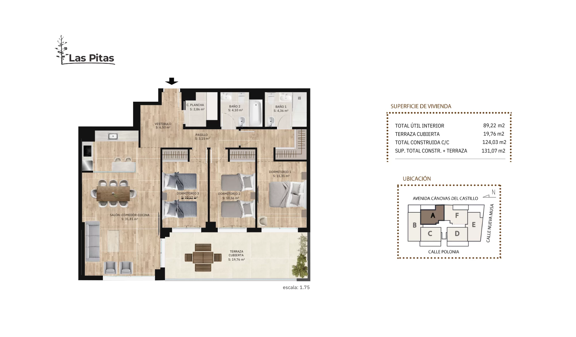 A | 3 | Este | 89,22m² | 19,76m² | 124,03m² | 131,07m² | Descargar | Disponible |